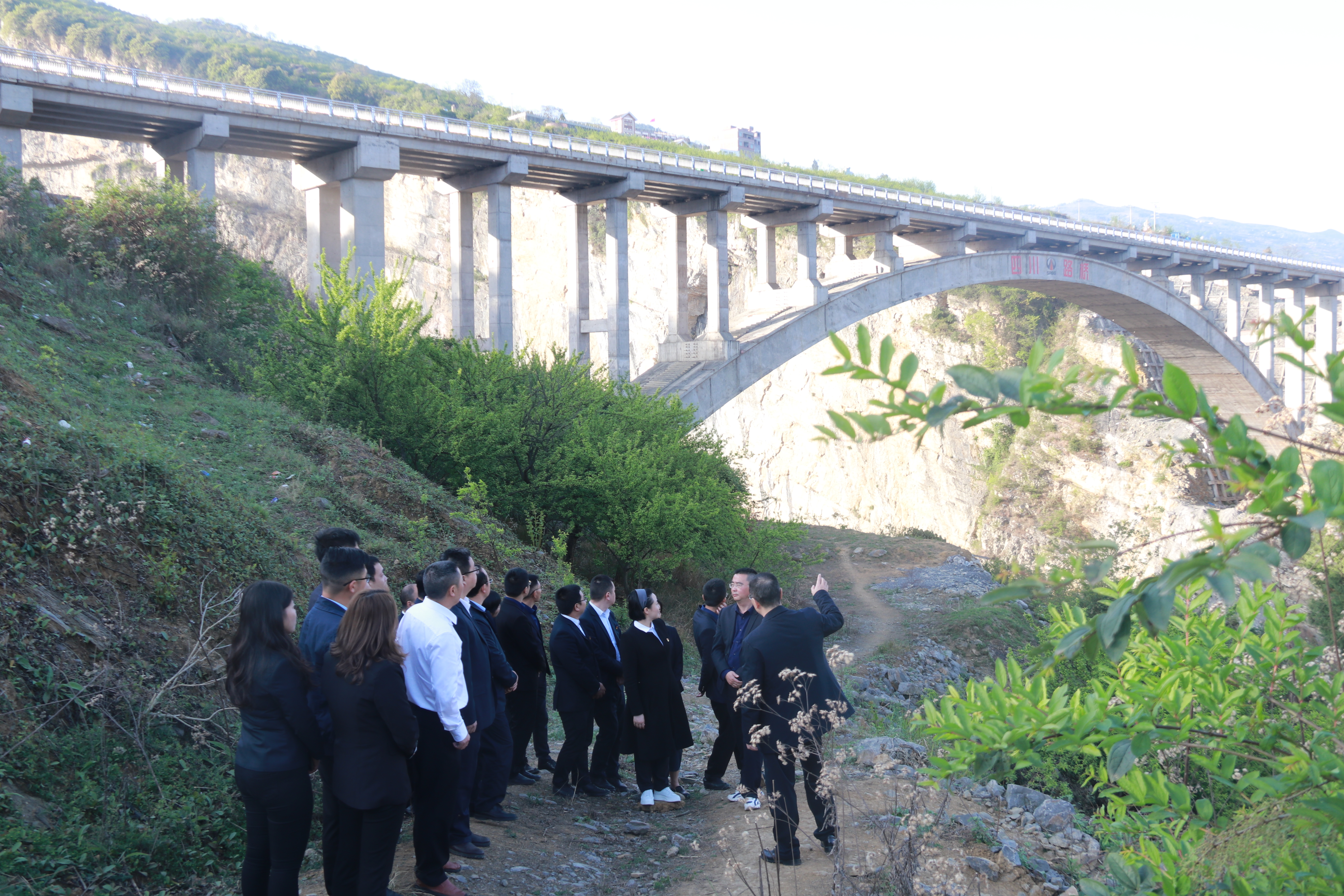 在雞鳴三省大橋現(xiàn)場,作為四川鐵投集團橋梁專家的公司黨委書記、董事長劉小波,結(jié)合大橋?qū)嶋H情況,憑借著30余年橋梁施工管理經(jīng)驗,通過與已建成的敘古高速螺絲寨特大橋、赤水河紅軍大橋和正在修建中的古金高速水落河特大橋、赤水河特大橋進行對比,形象鮮明地講述了雞鳴三省大橋的構(gòu)造和施工工藝,以及修建時的艱辛、建成后對地方經(jīng)濟和社會發(fā)展的意義,同時講解了四川路橋發(fā)展史與四川鐵投集團的歷史淵源,給全體黨員帶來了一堂富有特殊意義的生動黨課。在參與活動的黨員中,百分之八十以上來自四川路橋,都有著很深厚的“路橋情懷”,聽著深入淺出的講解,仰望連接川滇黔的大橋,更加激發(fā)了黨員同志們濃濃的路橋情結(jié),自豪感與榮譽感油然而生,大家紛紛表示要立足崗位,傳承交通鐵軍精神,擔負起交通強國使命,為實現(xiàn)交通強省和推動治蜀興川再上新臺階不懈努力。