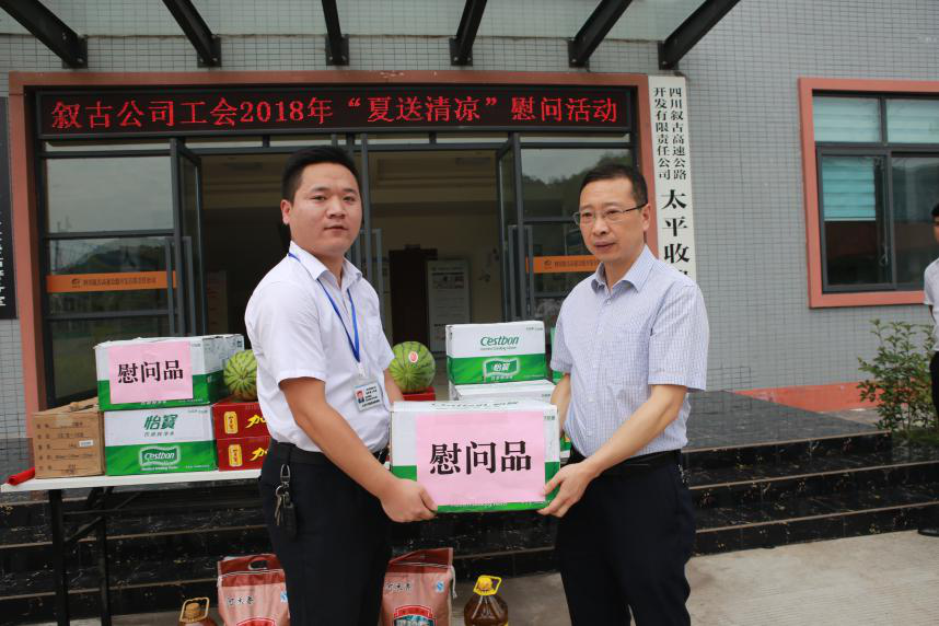 為表達(dá)對(duì)一線(xiàn)員工的關(guān)心和關(guān)愛(ài),確保基層員工身體健康,平安度夏。8月9日、14日,公司總經(jīng)理劉小波,紀(jì)委書(shū)記、工會(huì)主席李興明率公司黨群、收費(fèi)運(yùn)營(yíng)、路產(chǎn)安全、紀(jì)檢監(jiān)察處部門(mén)負(fù)責(zé)人一行先后前往一線(xiàn)收費(fèi)站和赤水河大橋施工現(xiàn)場(chǎng),親切慰問(wèn)在高溫酷暑中堅(jiān)守在一線(xiàn)的廣大員工。并在太平收費(fèi)站召開(kāi)敘古公司“大學(xué)習(xí)、大調(diào)研、大討論”現(xiàn)場(chǎng)辦公會(huì),就站上存在的安全隱患、職工急需解決的困難和問(wèn)題進(jìn)行研究部署。