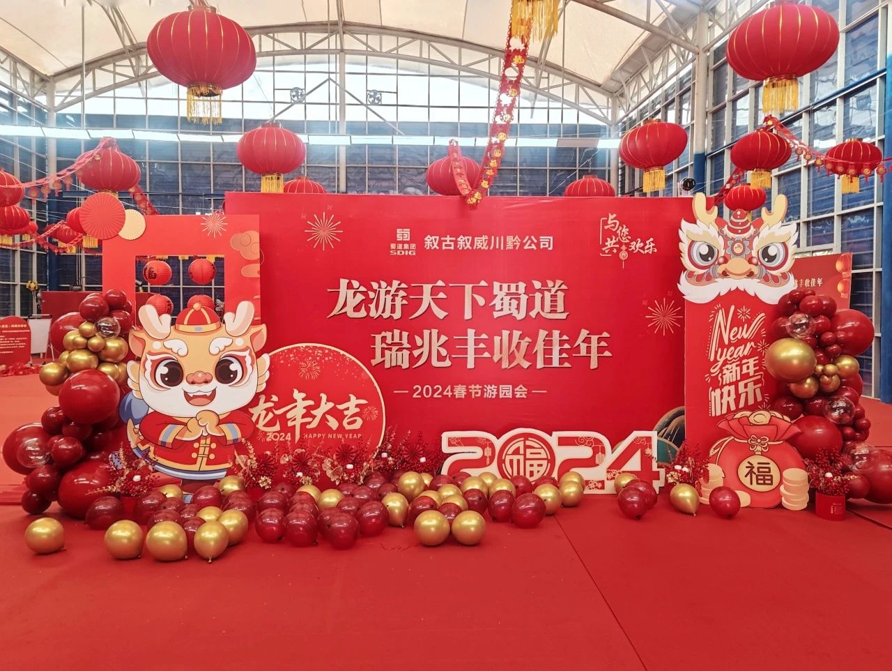 玉兔歡歌辭舊歲,金龍起舞迎新春。在2024龍年春節(jié)即將到來(lái)之際,為加強(qiáng)企業(yè)文化建設(shè),豐富職工精神文化生活,營(yíng)造歡樂(lè)祥和、喜慶熱鬧的節(jié)日氛圍,2月5日,公司組織開(kāi)展“龍游天下蜀道 瑞兆豐收佳年”敘古敘威川黔公司2024春節(jié)游園會(huì)活動(dòng)。公司在家領(lǐng)導(dǎo),職工及家屬共200余人參加本次活動(dòng)。