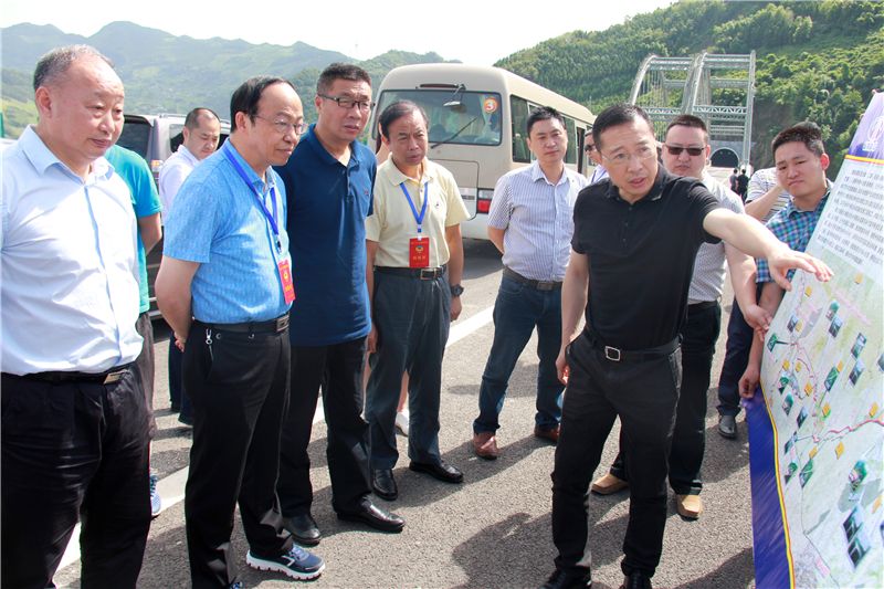 6月16日,川南“7+1”市政協(xié)聯(lián)席會議40余名參會人員,在公司總經(jīng)理劉小波等陪同下,沿途考察敘古高速公路建設(shè)情況。在螺絲寨大橋,川南各市政協(xié)成員情不自禁下車拍照、參觀,詳細了解了敘古高速建設(shè)情況,對敘古高速助推經(jīng)濟發(fā)展、連接革命老區(qū)的巨大作用和工程壯美景觀,贊不絕口。瀘州市政協(xié)主席喻雙,副主席巫俊明、梁中元陪同考察。