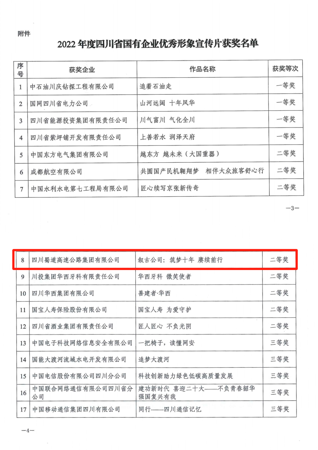 蜀道高速集團(tuán)敘古公司微視頻《筑夢(mèng)十年 賡續(xù)前行》喜獲2022年度四川省國(guó)有企業(yè)優(yōu)秀形象宣傳片二等獎(jiǎng)