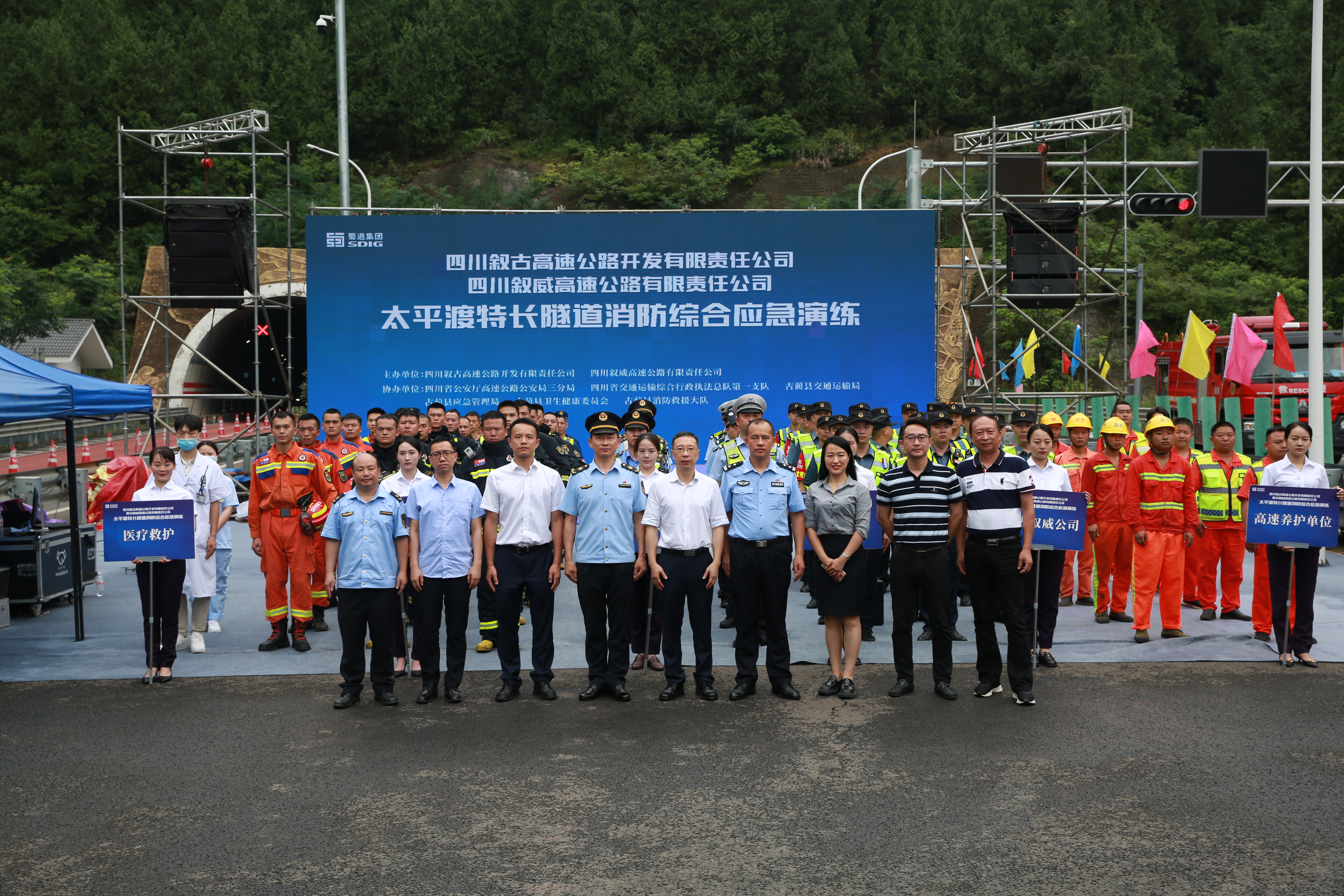 6月29日,由敘古敘威公司主辦,四川省公安廳高速公路三分局、四川省交通運輸綜合行政執(zhí)法總隊第一支隊、古藺縣應(yīng)急管理局、古藺縣交通運輸局、古藺縣衛(wèi)生健康委員會及古藺縣消防救援大隊協(xié)辦的S80古宜高速公路太平渡隧道消防綜合應(yīng)急演練順利舉行。敘古敘威公司黨委書記、董事長、總經(jīng)理劉小波出席活動并擔(dān)任演練總指揮。四川省交通運輸綜合行政執(zhí)法總隊第一支隊副支隊長羅勇、四川省公安廳高速公路三分局案偵大隊大隊長鄭付彬出席觀摩現(xiàn)場并作指導(dǎo)。