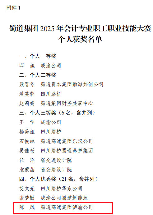 【喜報】瀘渝公司陳鳳榮獲蜀道集團2025年會計專業(yè)職工職業(yè)技能大賽個人優(yōu)秀獎